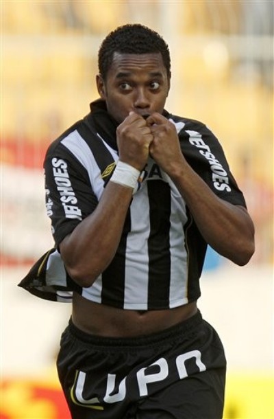 روبسون دي سوزا ... الشهير بروبينهو سجل واحدة من أبرز الغرائب التي شهدتها عودة اللاعبين البرازيليين إلى ملاعب الدوري المحلي البرازيلي بعدما سطع نجمهم أوروبياً فبعدما انقاد وراء الأموال تاركاً وراءه مجد الملكي المدريدي ومنضماً لمانشستر سيتي الإنجليزي كأولى الصفقات الكبرى بعد انتقال ملكية الفريق إلى الخاصية العربية شارك روبينهو في 41 مباراة خلال موسمين أمتع خلالهما الجمهور الإنجليزي ولكن فجأة وبدون مقدمات بدأت علاقته تتأزم وبات بقاءه أمر مستبعد .