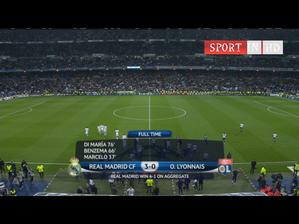وفك ريال مدريد عقدته أمام ضيفه ليون وحقق فوزه الأول عليه في 8 مباريات بينهما وذلك بفضل البرازيلي مارسيلو ولاعب ليون السابق الفرنسي كريم بنزيمة والأرجنتيني انخيل دي ماريا الذين سجلوا الأهداف الثلاثة في الدقائق 37 و66 و76 على التوالي.