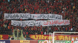 كما رفعت جماهير الأهلي لافتة أخرى مكتوب عليها على الشهادة ناويين لتحرير فلسطين ، وظهرت لافتة صغيرة حملها أحد المشجعين مكتوب عليها "مبارك علينا عهد جديد بدون مبارك".